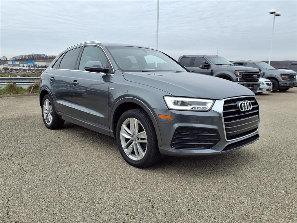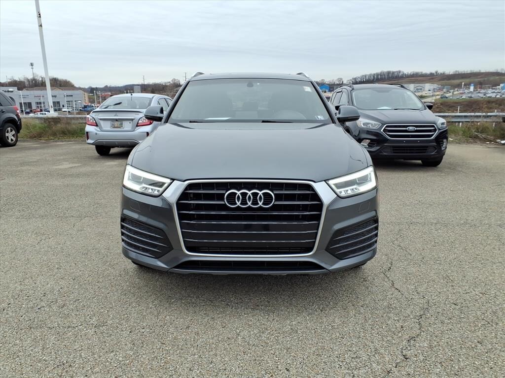 This 2018 Audi Q3 2.0T quattro Premium Plus is a vehicle that is sure to turn heads. With its low mileage of 56,896 miles and all wheel drive, this car is sure to provide you with years of reliable service. The Daytona Gray Pearl effect exterior gives it a sleek and modern look, while the black interior provides a luxurious feel. The car also features Bluetooth audio connection, blind spot sensor, hill start assist, full time four wheel drive, Bluetooth phone connectivity, and leather seats for your comfort. With a fuel economy of 20 mpg in the city and 28 mpg on the highway, this car is sure to save you money at the pump. It also comes with a carfax report available for your peace of mind.