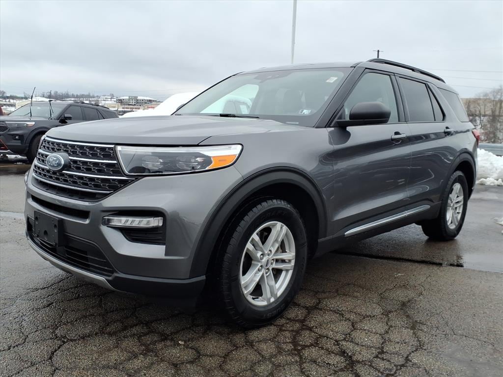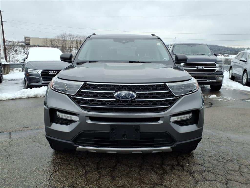 This 2021 Ford Explorer XLT is a certified pre-owned vehicle with a 2.3 liter EcoBoost Turbo I4 300hp 310 lb-ft engine, direct injection, and all wheel drive. It has a carbonized gray exterior and an ebony interior, giving it a luxurious feel. It has driven 46,601 miles and has a crash test rating of 5 out of 5 stars. It also has great features such as touch screen display, Bluetooth audio connection, blind spot sensor, hill start assist, on demand four wheel drive, Apple Carplay ready, navigation system with voice recognition, and leather seats. This carfax report is available for your convenience so you can be sure of its quality before making an offer.