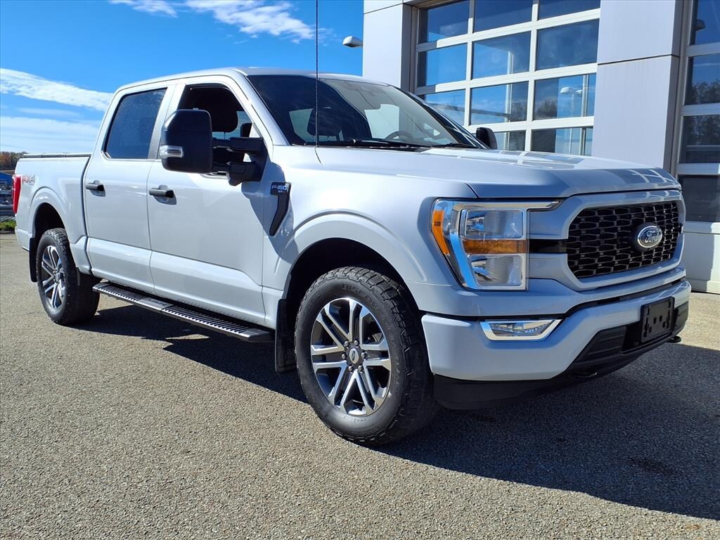 This 2021 Ford F-150 XL is a certified pre-owned vehicle with a space white exterior and black interior. It has a 3.5 liter EcoBoost Twin Turbo V6 400hp 500 lb-ft engine with direct injection, and a fuel economy of 17 mpg in the city and 23 mpg on the highway. It has a crash test rating of 5 out of 5 stars and features such as touch screen display, Bluetooth audio connection, blind spot sensor, hill start assist, part time four wheel drive, navigation system with voice recognition, and Bluetooth phone connectivity. This car has 59,691 miles on it and comes with a carfax report available for review. This car is sure to turn heads wherever it goes!