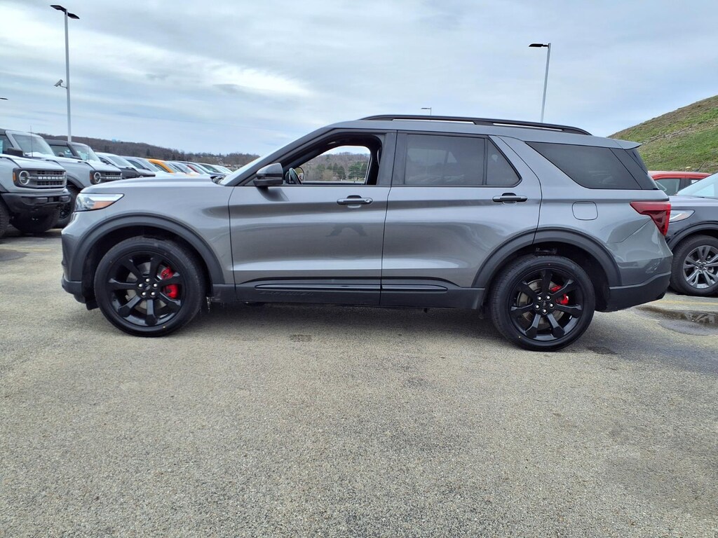 This 2023 Ford Explorer ST is a certified pre-owned vehicle with a crash test rating of 5 out of 5 stars and all wheel drive. It has a 3.0 liter EcoBoost Twin Turbo V6 400hp 415 lb-ft engine, direct injection, and an agate black exterior. It has an ebony interior and features such as touch screen display, Bluetooth audio connection, blind spot sensor, hill start assist, on demand four wheel drive, Apple Carplay ready, navigation system with voice recognition, navigation with touch screen display, Bluetooth phone connectivity, and leather-trimmed seats. This carfax report shows that this vehicle has driven 32,504 miles and has been well maintained. With its all wheel drive, 3.0 liter EcoBoost Twin Turbo V6 400hp 415 lb-ft engine, and direct injection, this car will surely provide you with years of reliable service.