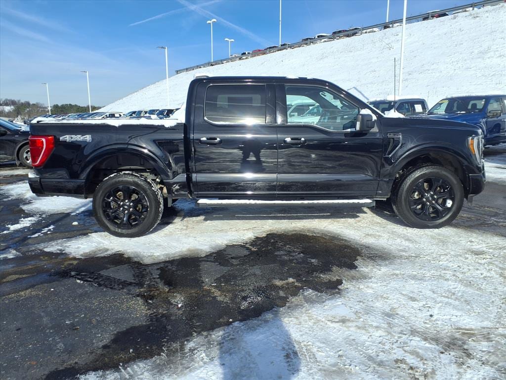 This vehicle is a 2023 Ford F-150 XLT, certified pre-owned with 36,841 miles. It has a 2.7 liter EcoBoost Twin Turbo V6 325hp 400 lb-ft direct injection engine, and an agate black exterior. It has a fuel economy of 17 mpg in the city and 23 mpg on the highway, making it an efficient choice for your daily commute. It also has a crash test rating of 5 out of 5 stars, making it safe and secure on the road. The vehicle also comes with a number of features such as touch screen display, Bluetooth audio connection, blind spot sensor, hill start assist, part time four wheel drive, navigation system with voice recognition, and Bluetooth phone connectivity. Leather-trimmed seats complete the package for this vehicle.