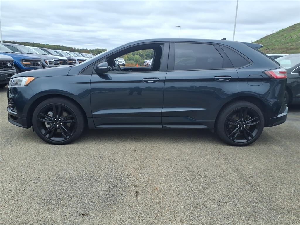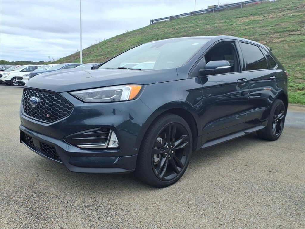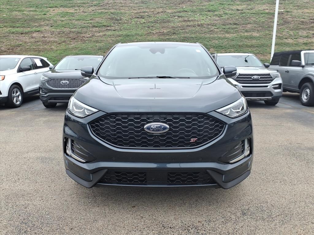 This vehicle is a 2024 Ford Edge ST, certified pre-owned with a 2.7 liter EcoBoost Twin Turbo V6 335hp 380 lb-ft engine, direct injection. It has a stone blue exterior and an ebony interior, making it stand out from the crowd. It has driven 26,952 miles and comes with a carfax report available for your review. This vehicle has an impressive fuel economy of 19 mpg in the city and 25 mpg on the highway, making it an economical choice for your daily commute. It also has a crash test rating of 5 out of 5 stars, making it even safer on the roads. This Edge also features touch screen display, Bluetooth audio connection, blind spot sensor, hill start assist, on demand four wheel drive, Bluetooth phone connectivity, and leather-trimmed seats for your comfort and convenience. With its powerful engine and advanced features, this car is sure to turn heads on the road!