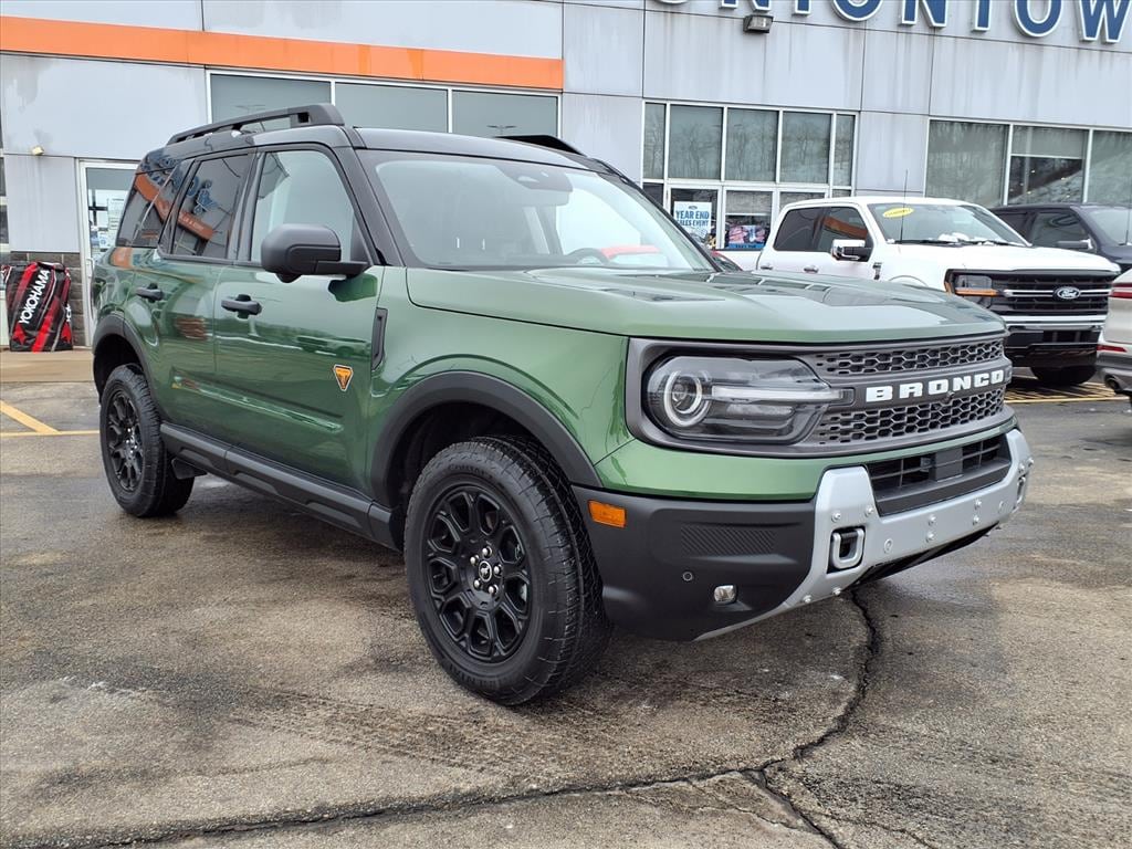 This vehicle is a 2025 Ford Bronco Sport Badlands, certified pre-owned with an all wheel drive, 2.0 liter EcoBoost Turbo I4 238hp 277 lb-ft engine, direct injection. It has an eruption green exterior and a dark space gray interior. It has a crash test rating of 5 out of 5 stars and features such as touch screen display, Bluetooth audio connection, blind spot sensor, hill start assist, part time with on demand four wheel drive, Bluetooth phone connectivity, and more. This car has driven 15,285 miles and has a carfax report available for your review. With its fuel economy in city at 21 mpg and fuel economy on highway at 27 mpg, you can be sure that this car will get you where you need to go in style and comfort.