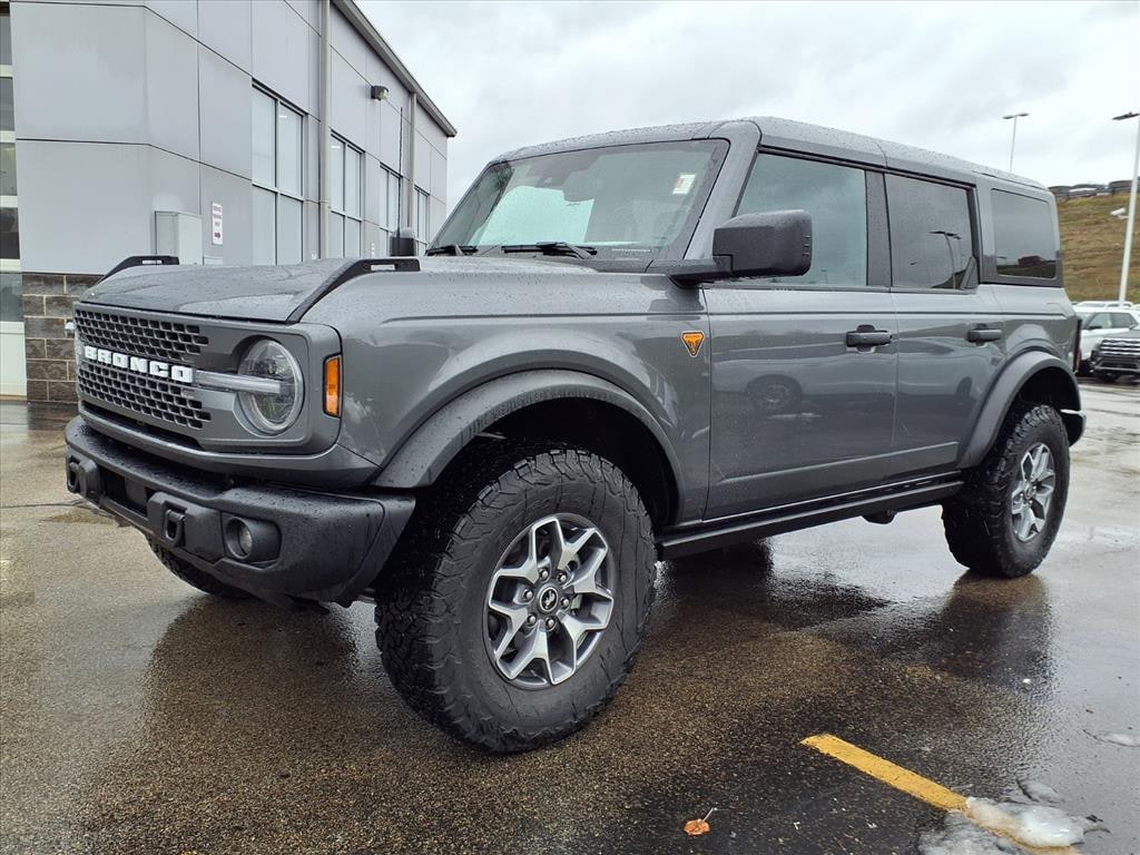 This 2025 Ford Bronco Badlands is a certified pre-owned vehicle that has been driven 18,024 miles. It is powered by a 2.7 liter EcoBoost Twin Turbo V6 315hp 410 lb-ft engine with direct injection and has a gray exterior. It has a black onyx interior and features such as a touch screen display, Bluetooth audio connection, hill start assist, part time with on demand four wheel drive, Bluetooth phone connectivity, and more. This car has an impressive fuel economy of 17 mpg in the city and 18 mpg on the highway, making it an ideal choice for those looking for a reliable ride. With its carfax report available, this car is sure to turn heads wherever it goes!