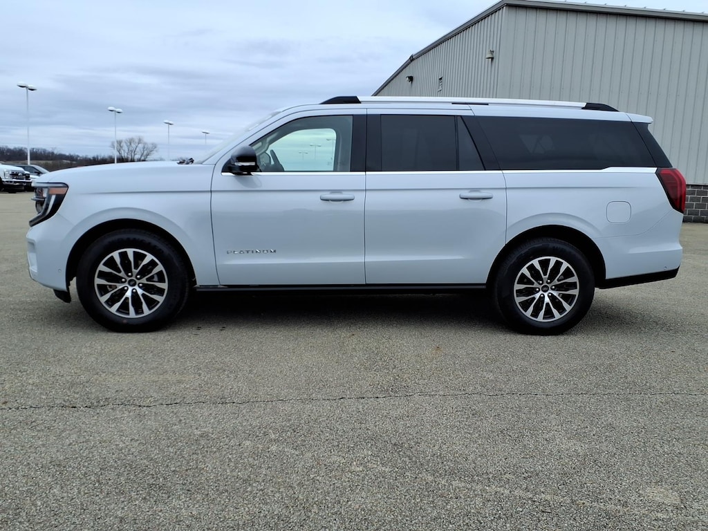 This vehicle is a 2025 Ford Expedition MAX Platinum, certified pre-owned with a 4x4, 3.5 liter EcoBoost Twin Turbo V6 400hp 480 lb-ft direct injection engine, and a white exterior with a black interior. It has 28,858 miles and a crash test rating of 5 out of 5 stars. It also comes with many features such as touch screen display, Bluetooth audio connection, blind spot sensor, hill start assist, and part time with on demand four wheel drive, navigation system with voice recognition, and leather-trimmed seats. This carfax report is available for your review and approval.