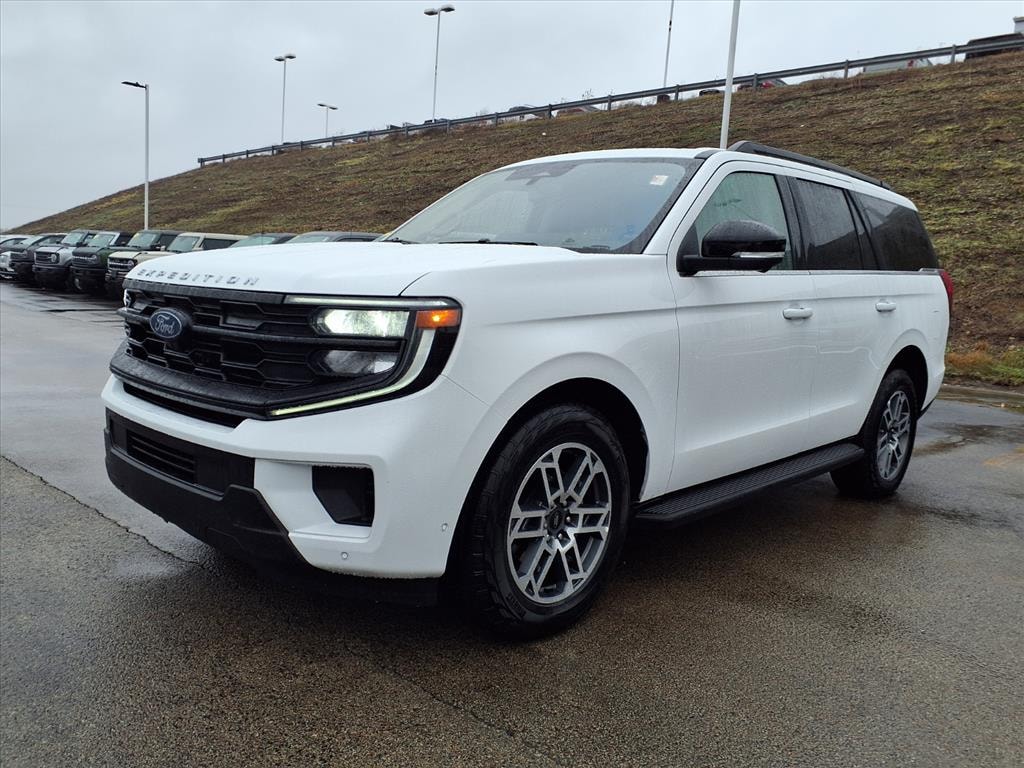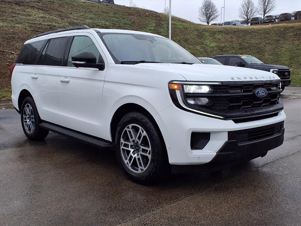 This vehicle is a 2025 Ford Expedition Active, certified pre-owned with a 4x4, 3.5 liter EcoBoost Twin Turbo V6 400hp 480 lb-ft engine, direct injection. It has a white exterior and a gray interior. It has driven 18,509 miles and has a crash test rating of 5 out of 5 stars. Vehicle features include touch screen display, Bluetooth audio connection, blind spot sensor, hill start assist, part time with on demand four wheel drive, navigation system with voice recognition, and Bluetooth phone connectivity. This car has an impressive fuel economy of 15 mpg in the city and 22 mpg on the highway, making it an ideal choice for those who want to save money on gas. Additionally, its 5 out of 5 stars crash test rating makes it a safe option for anyone looking to purchase a car of this caliber.