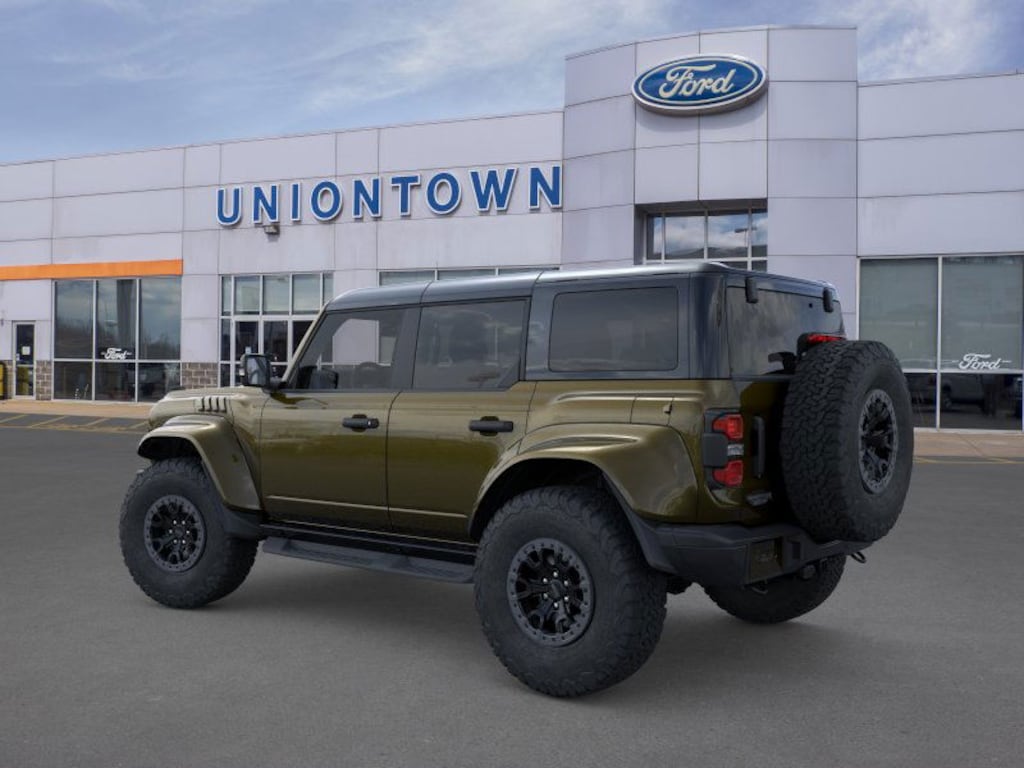 The 2025 Ford Bronco Raptor is a powerful and reliable SUV 4x4 that has been made with the latest technology. It has a green exterior and black / blue interior, and features such as a touch screen display, Bluetooth audio connection, blind spot sensor, hill start assist, part time with on demand four wheel drive, navigation system with voice recognition, and Bluetooth phone connectivity. This vehicle is sure to turn heads on the road, and its powerful 3.0 liter 6 cylinder engine and twin turbo powertrain will ensure that it can handle any terrain you throw at it. Whether you're looking for a reliable and powerful ride or just something a little different, the 2025 Ford Bronco Raptor is sure to impress. Price Includes Financing with Ford Motor Credit Company. Additional Incentives you may or may not be applicable for which include; 1st Responder, College Student Purchase Program, Military, Competitive Conquest, or Farm Bureau. Contact Dealer for Details.