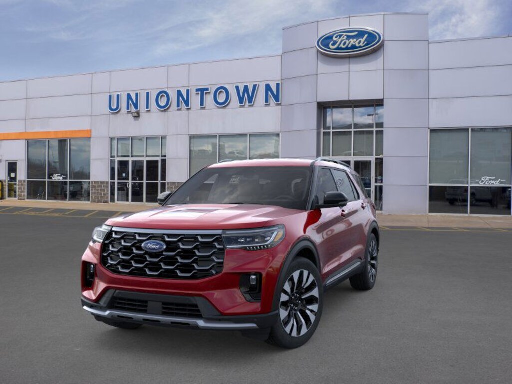 The 2026 Ford Explorer Platinum SUV is a state-of-the-art vehicle that combines all-wheel drive with a 2.3 liter 4 cylinder engine and turbocharged power. It has an eye-catching red exterior and a comfortable mojave interior, with features such as touch screen display, Bluetooth audio connection, blind spot sensor, hill start assist, and navigation with voice recognition. It also has a crash test rating of 5 out of 5 stars, making it one of the safest vehicles on the road today. In addition to its impressive safety features, this car also offers convenience with its on-demand four wheel drive, leather-trimmed seats, and navigation system with voice recognition. With all these features and more, the 2026 Ford Explorer Platinum SUV is sure to be a reliable and luxurious choice for anyone looking for an all-wheel drive vehicle. Price Includes Financing with Ford Motor Credit Company. Additional Incentives you may or may not be applicable for which include; 1st Responder, College Student Purchase Program, Military, Competitive Conquest, or Farm Bureau. Contact Dealer for Details.