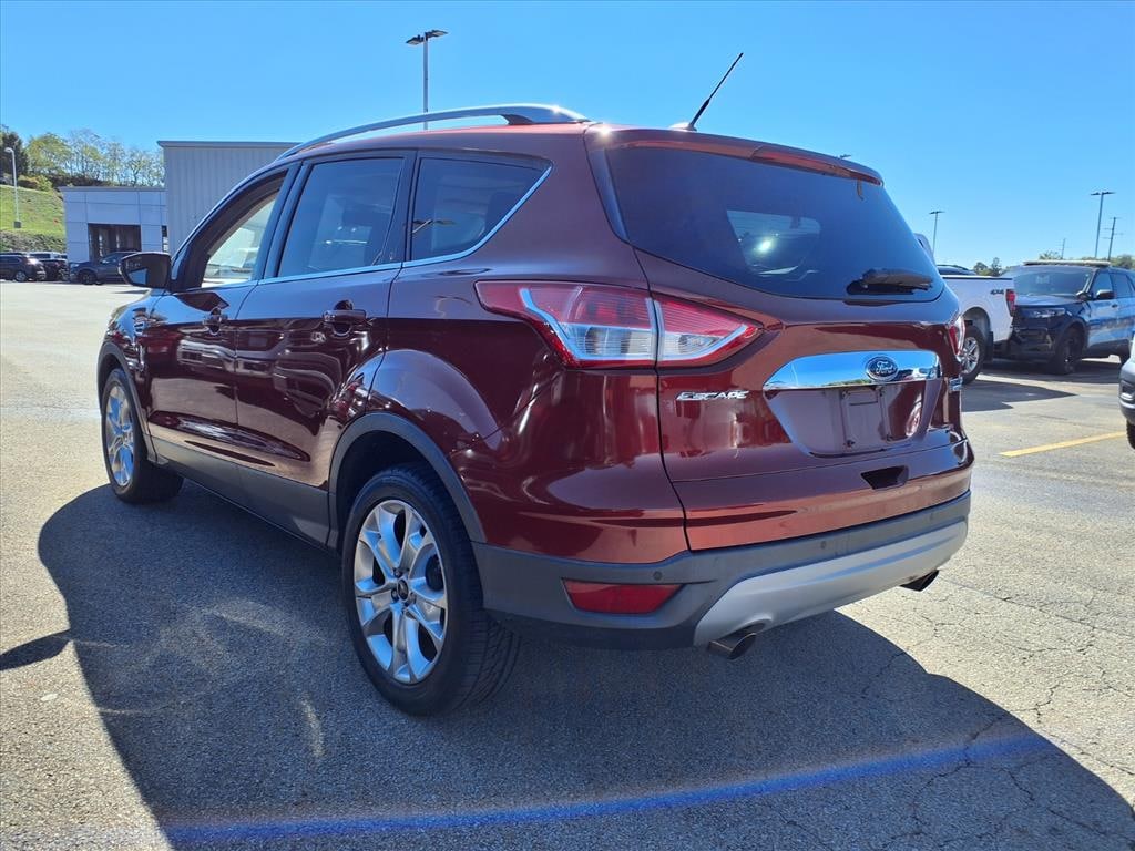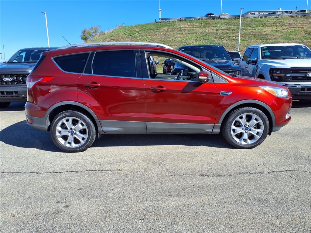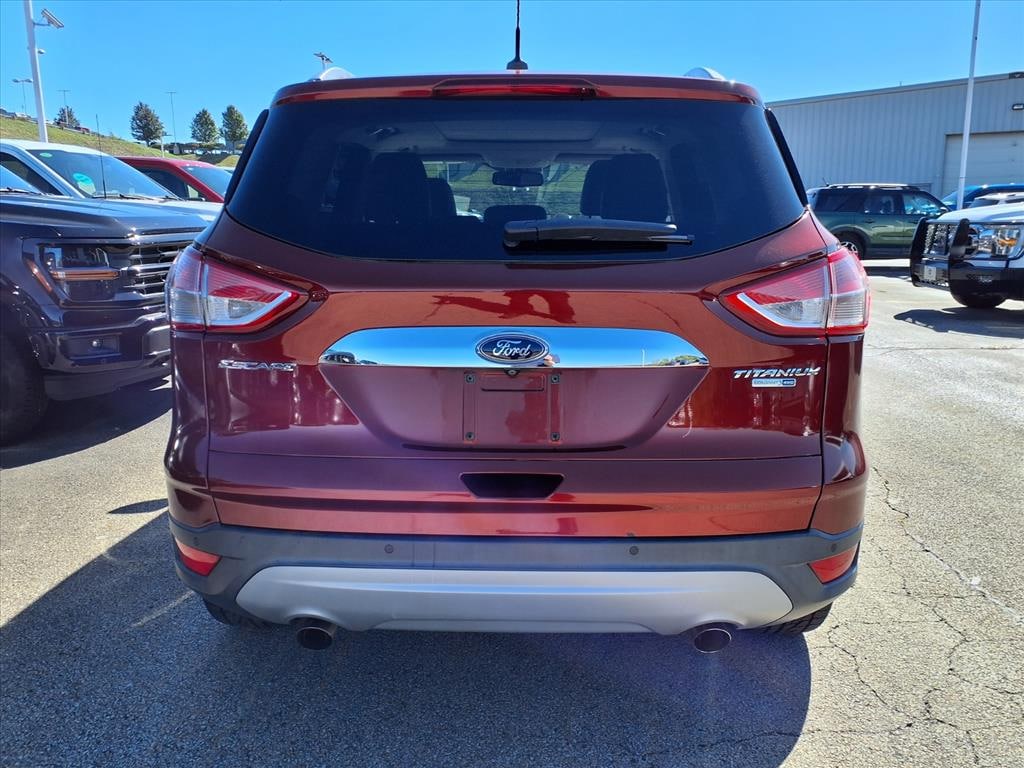This 2015 Ford Escape Titanium is a reliable and efficient vehicle that offers a lot of bang for your buck. With a low mileage of 41,774 miles and all-wheel drive, this car is sure to turn heads on the road. It has a sunset metallic exterior and a medium light stone interior that is sure to turn heads as well. Under the hood, you'll find a 2.0 liter EcoBoost Turbo I4 240hp 270 lb-ft engine with direct injection, giving you plenty of power to get you where you need to go. The car also has a crash test rating of 4 out of 5 stars, so you can be sure that you're safe while driving. Other features include touch screen display, Bluetooth audio connection, on demand four wheel drive, Bluetooth phone connectivity, and leather-trimmed seats. With a carfax report available, you can be sure that this car is in great condition and ready to go!