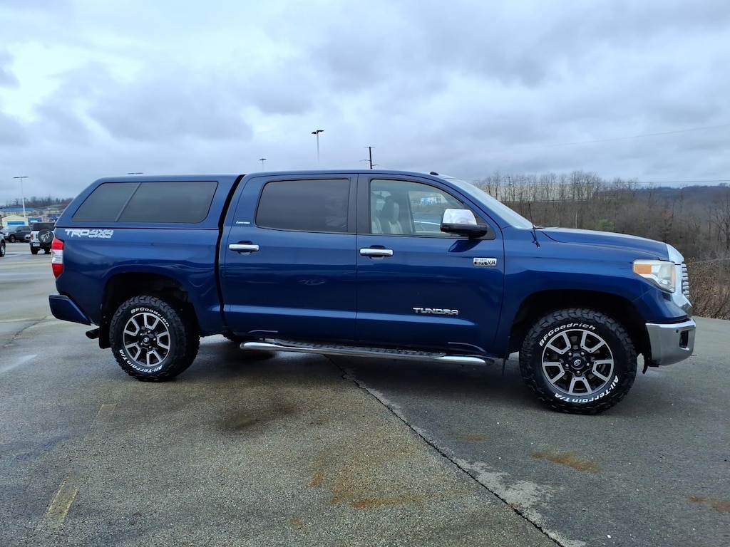 This vehicle is a 2015 Toyota Tundra Limited, with a carfax report available. It has been driven 191,977 miles and is equipped with a 4x4, 5.7 liter V8 381hp 401 lb-ft engine, and sequential multiport fuel injection. The exterior of the vehicle is blue ribbon metallic, while the interior is sand beige. It has a fuel economy of 13 mpg in the city and 17 mpg on the highway. This vehicle also comes with many features such as touch screen display, Bluetooth audio connection, part time four wheel drive, interior with leather accents, navigation system with voice recognition, navigation with touch screen display, Bluetooth phone connectivity, and leather-trimmed seats. With a crash test rating of 4 out of 5 stars, this Vehicle is sure to provide you with a safe and reliable ride.